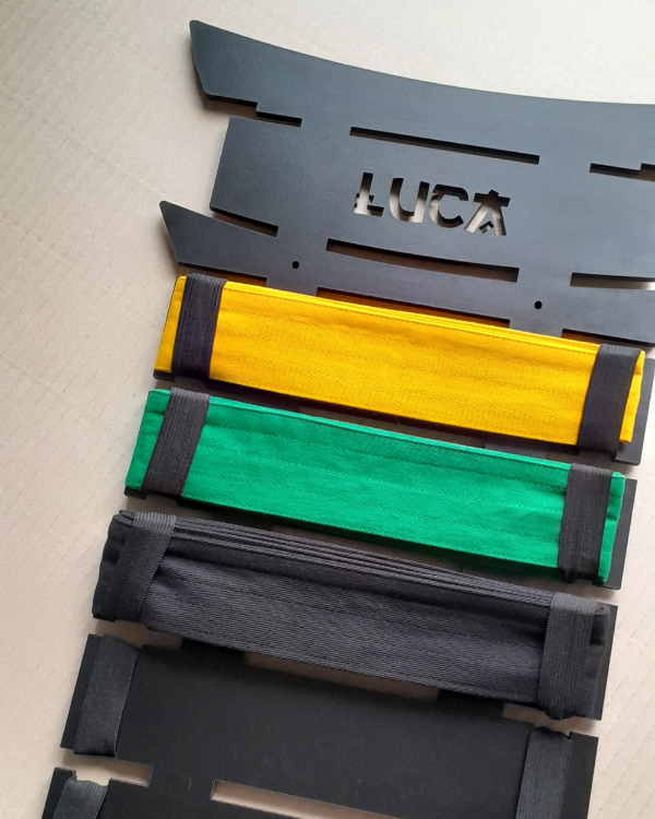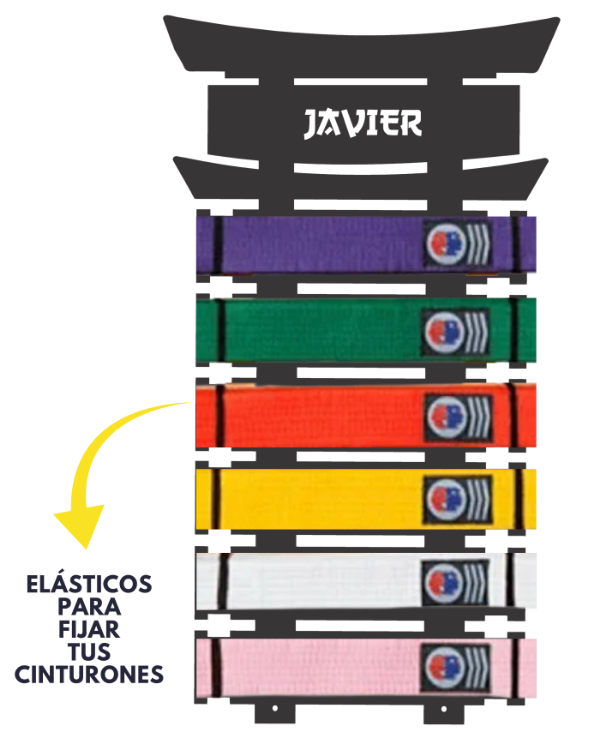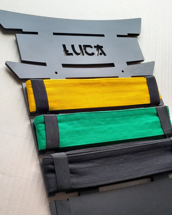 No guardes tus cinturones en un cajón! Llevá tu exhibidor de pared personalizado con tu nombre!